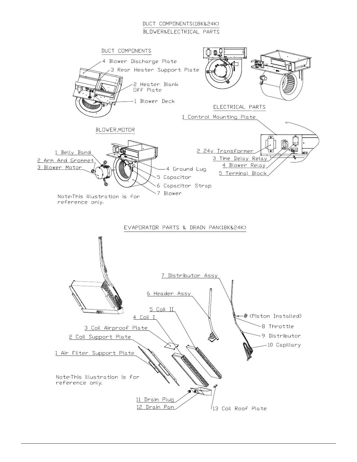 Fig. 21 – FFMA, FMA4, FMA5 (Sizes 18 & 24) Expanded View - Evaporator Parts & Drain Pan