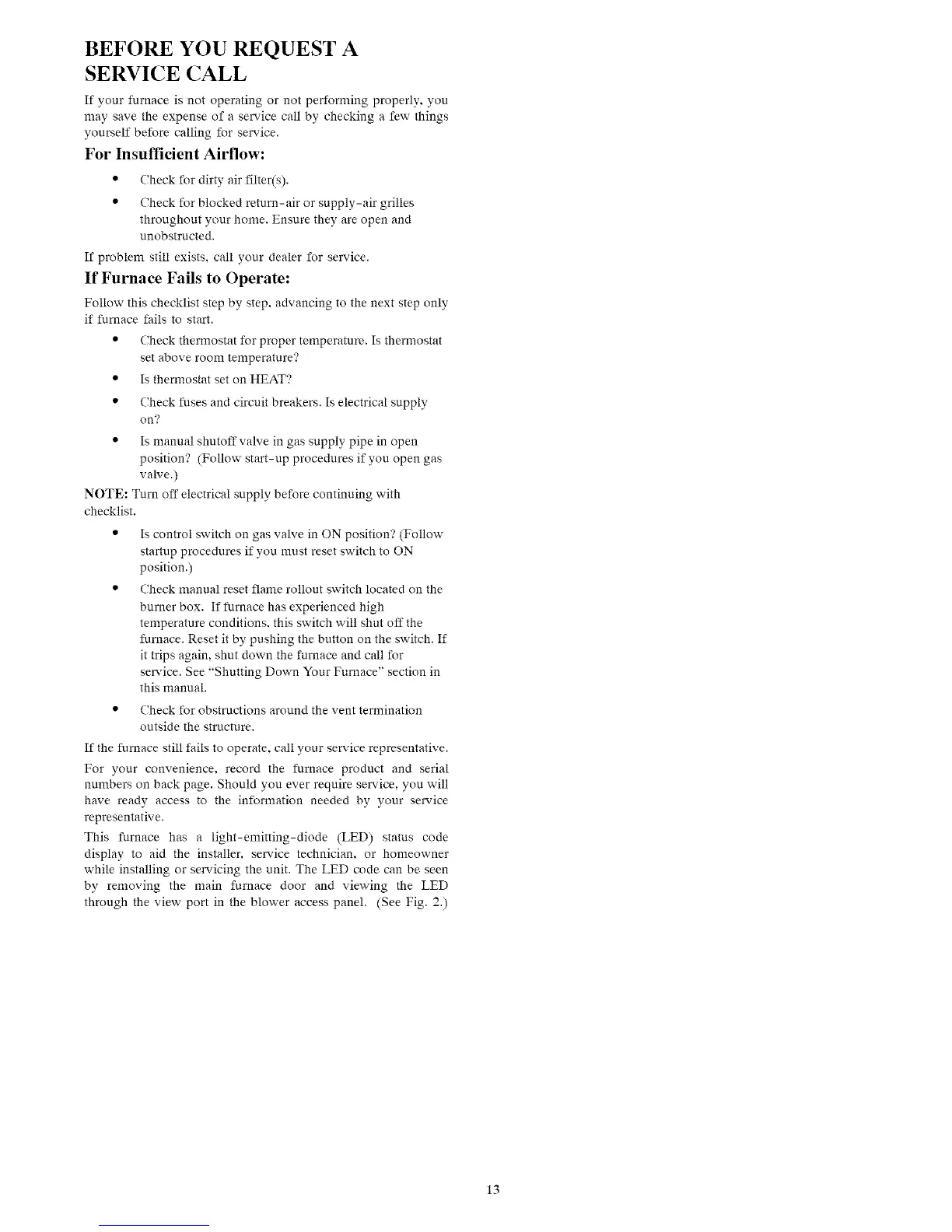 service. See "Shutting Down Your Furnace" section in