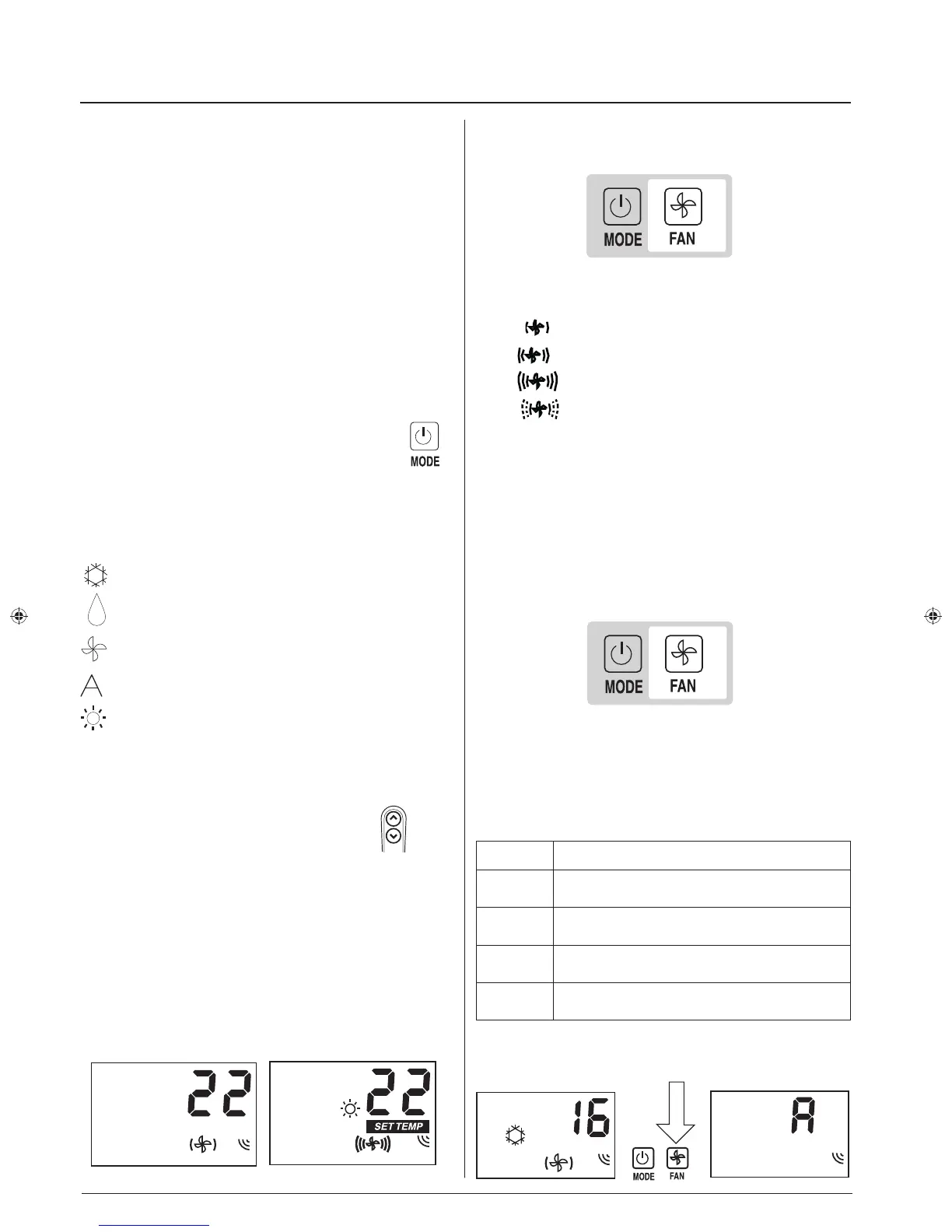Con la unidad en el modo ON, pulsando la tecla del ventilador se