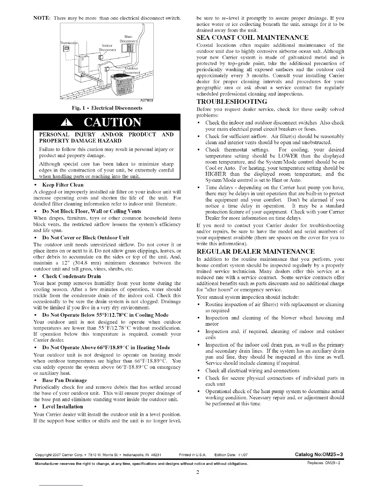 Copyright 2007 Carrier Corp. • 7310 W Morris St ° Indianapolis, IN 46231 Printed in US.A. Edition Date: 11/07
