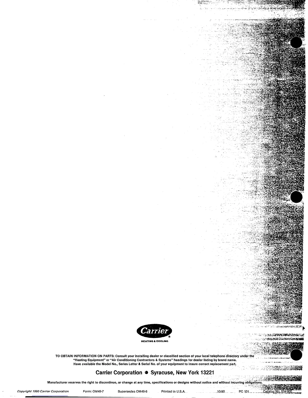 Carrier HUMIDIFIER 49BF - Obtaining Replacement Parts