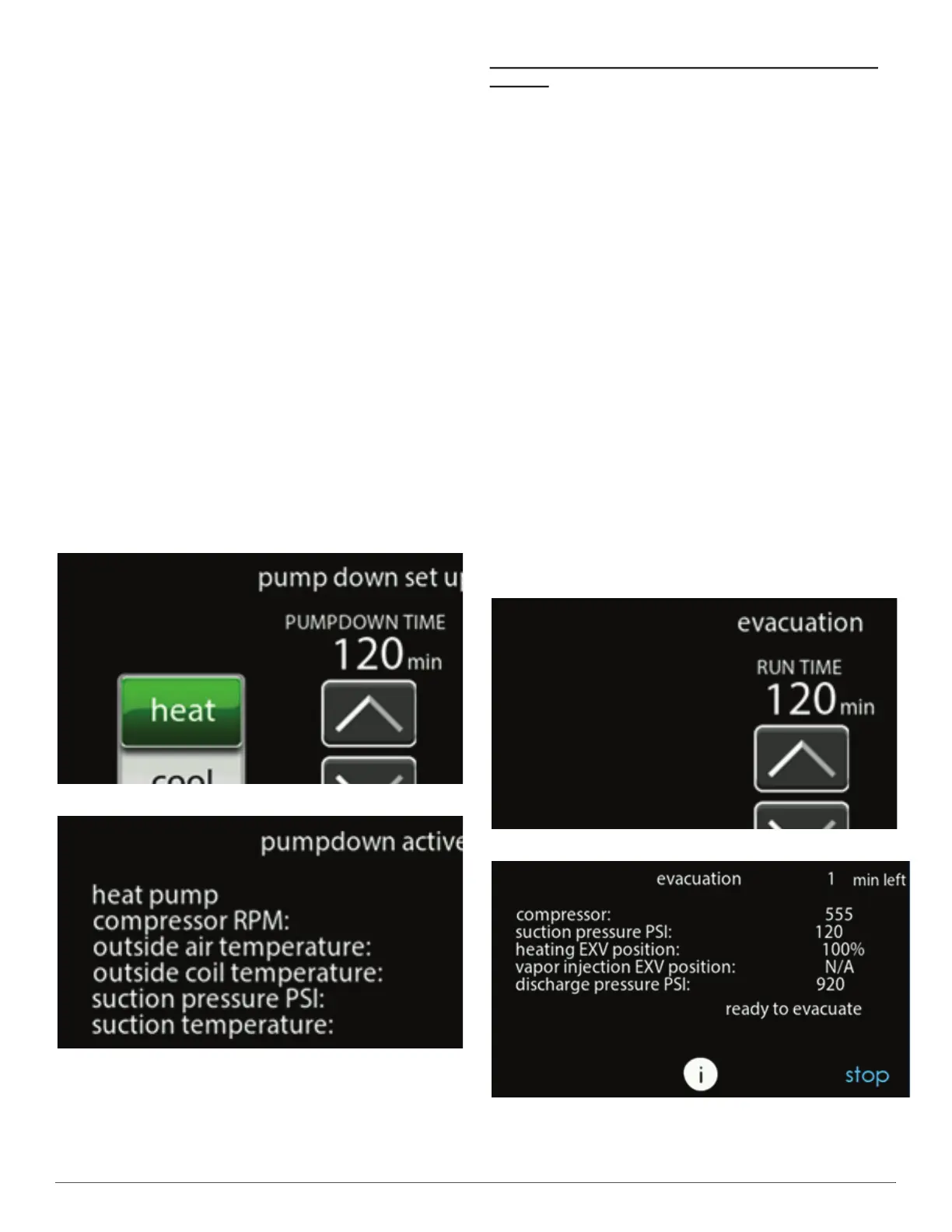 "refrigerant charging" and then "pump down" (see Fig. 11 &