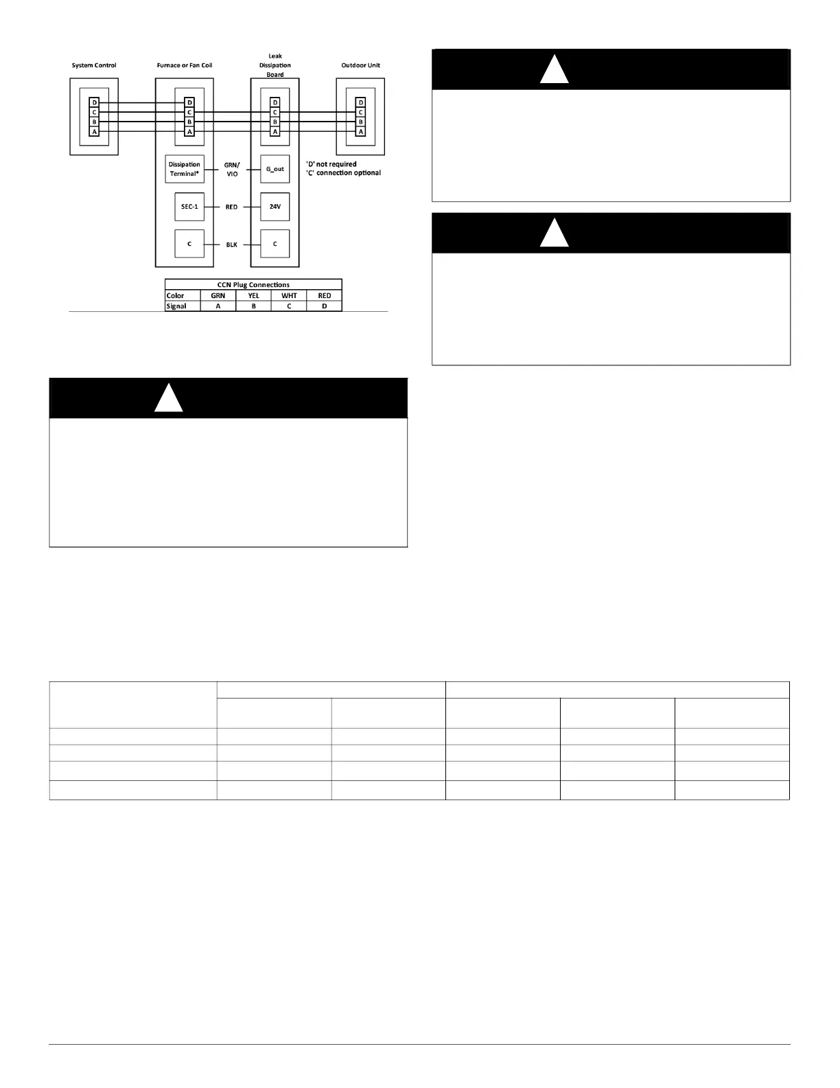 Table 1 – Refrigerant Connections and Recommended Liquid and Vapor Tube Diameters (in.)