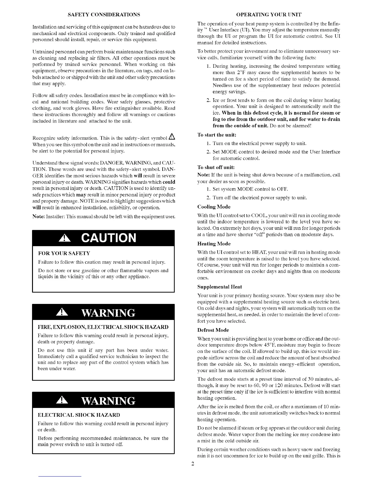 OPERATING YOUR UNIT