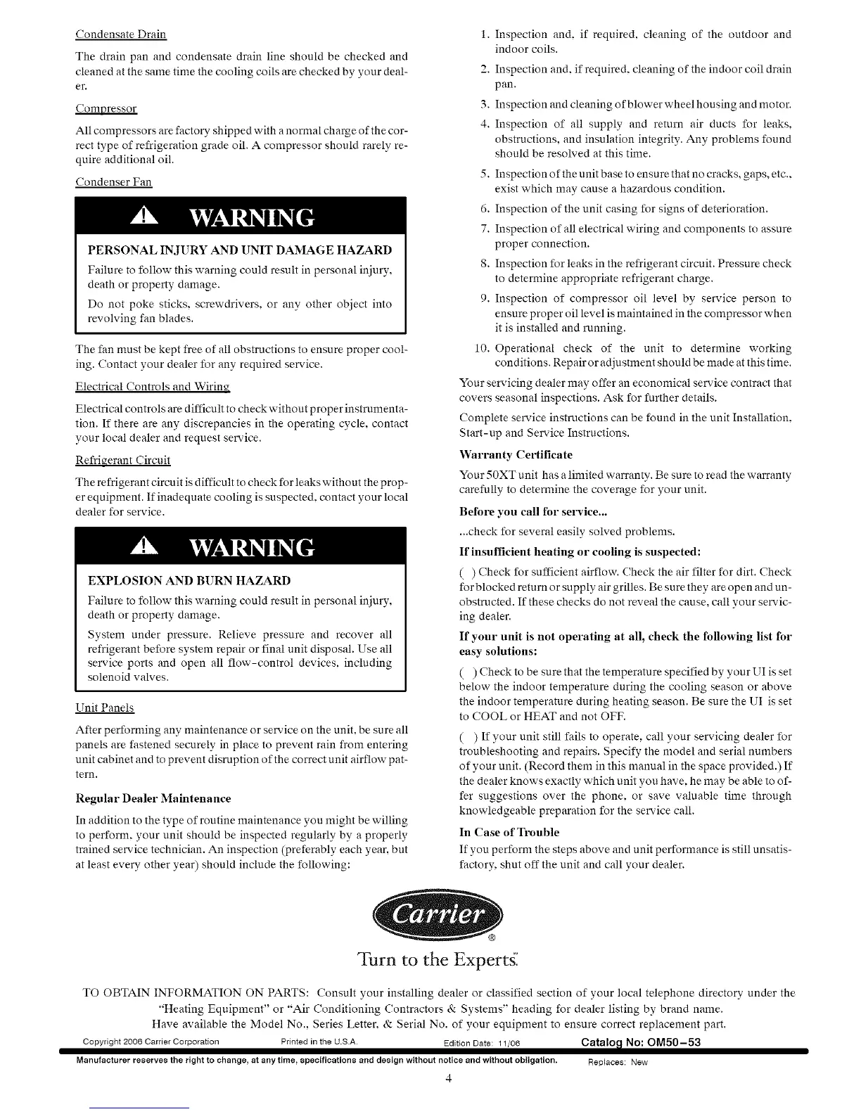 Copyright 2006 Carrier Corporation Printed in the O.SA Edition Date: 11/06 Cata[o_l No: 0M50-53