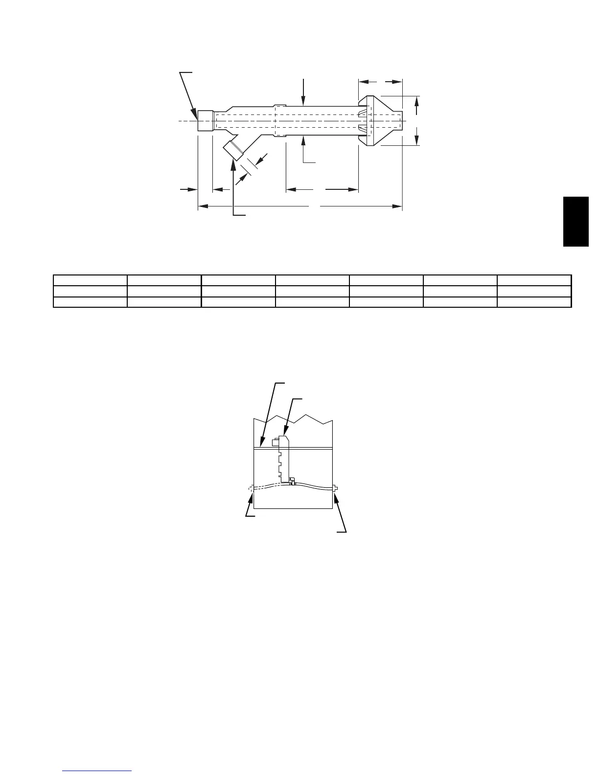 { Dimension D may be lengthened to 60 in. maximum. Dimension D may also be shortened by cutting the pipes provided in the kit to 12 in. minimum.