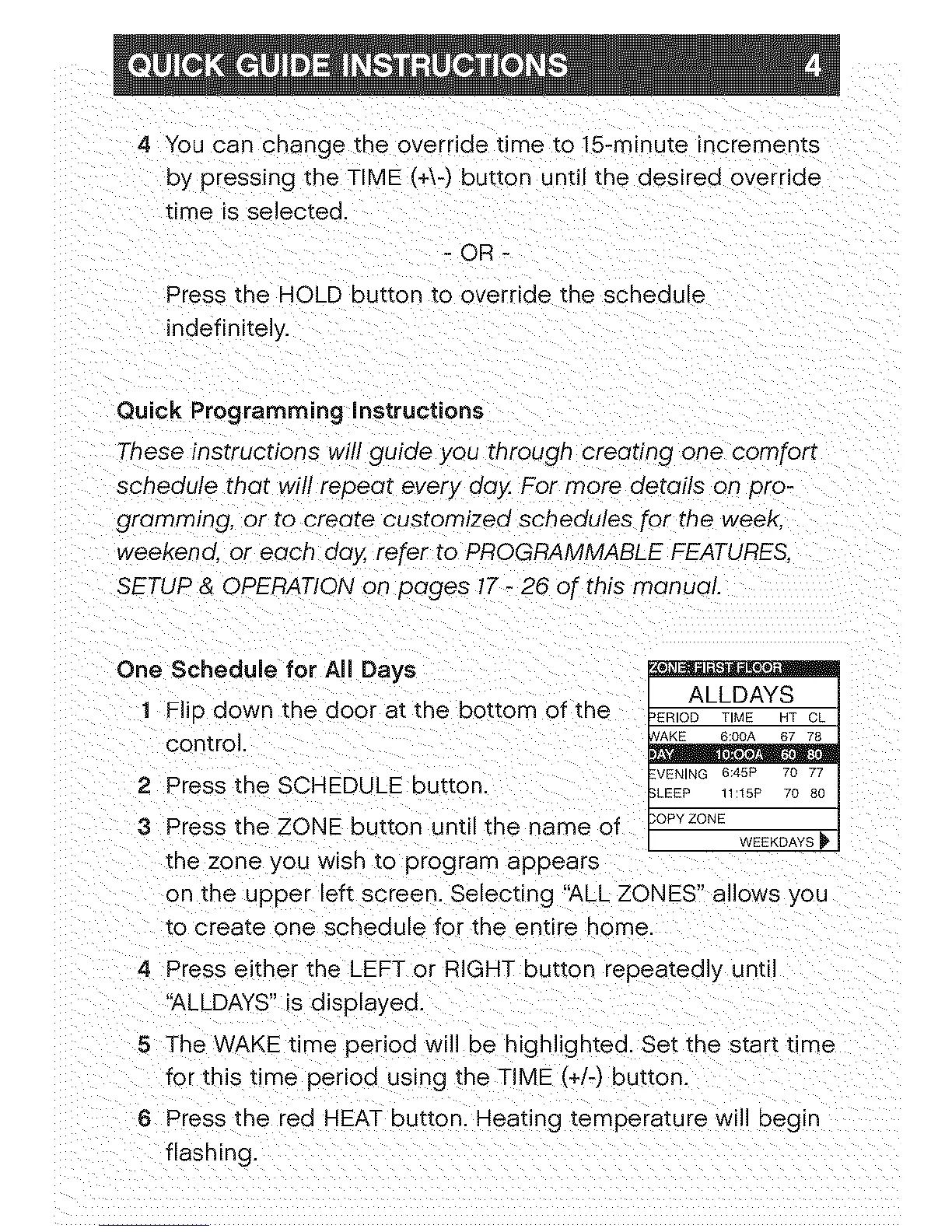 weekend, or each day. refer to PROGRAMMABLE FEATURES.