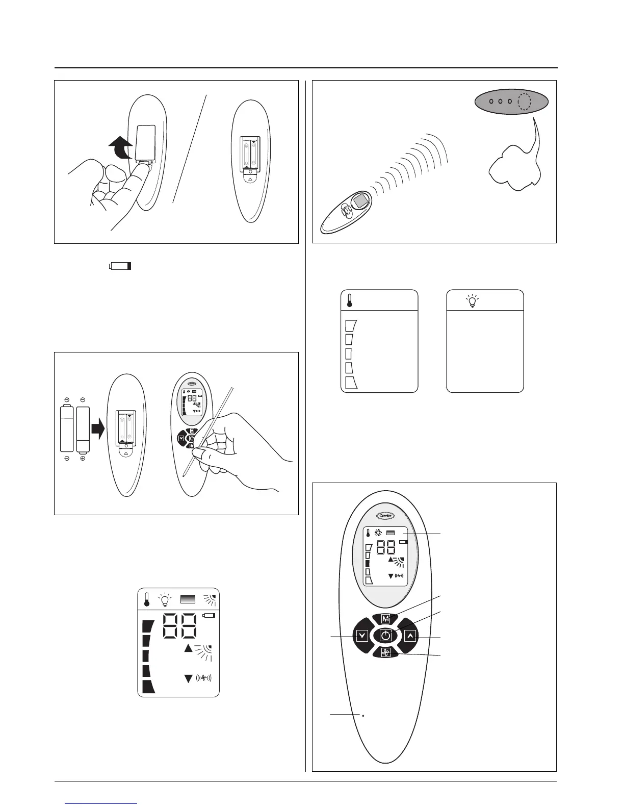 Fjärrkontrollen arbetar med två batterier av typen LR03x2, 1,5 V
