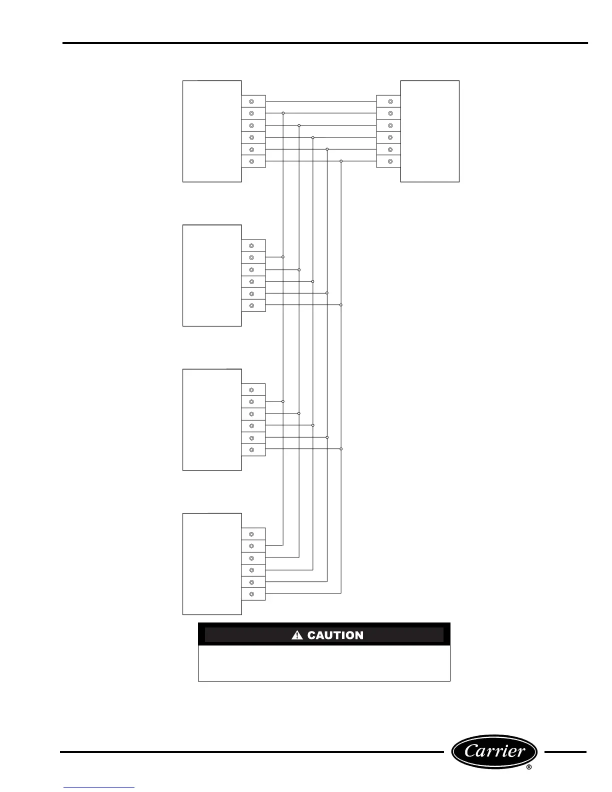 FIGURE 41 — TYPICAL WIRING FOR MULTIPLE 52C PTAC UNITS CONNECTED TO 1 WALL THERMOSTAT