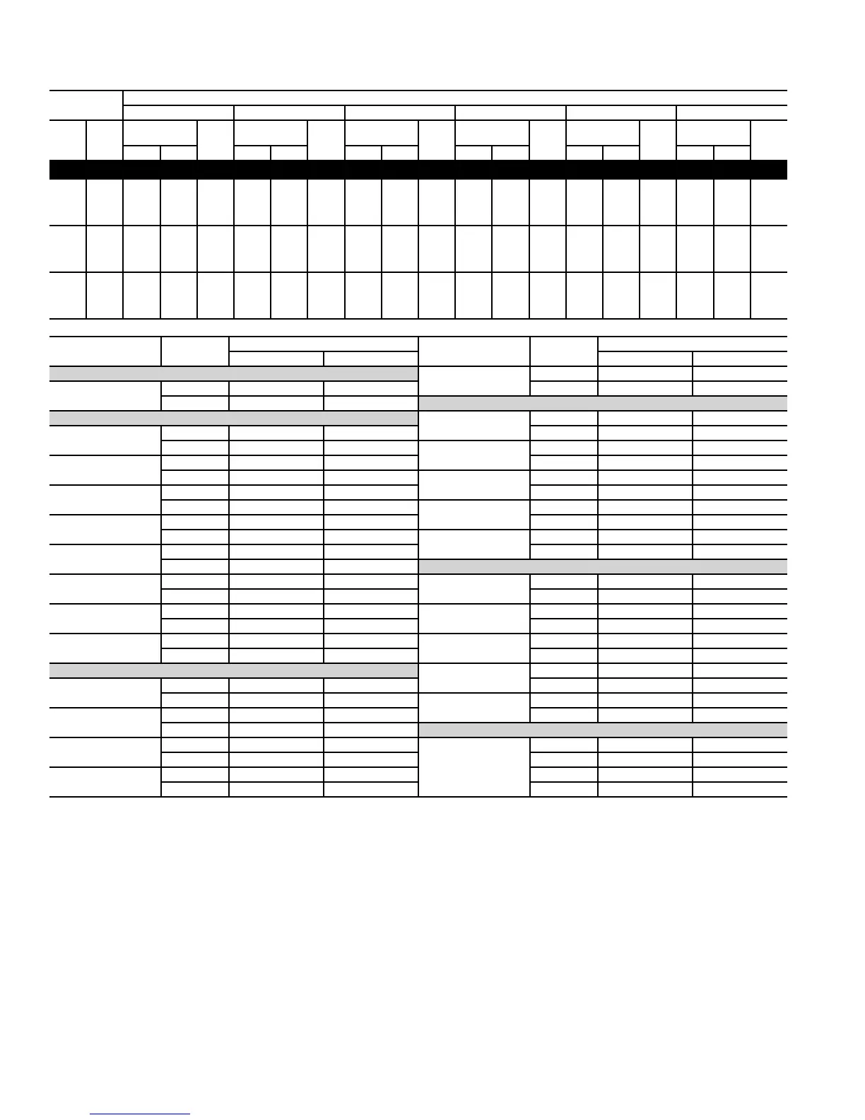 Detailed cooling capacities* continued