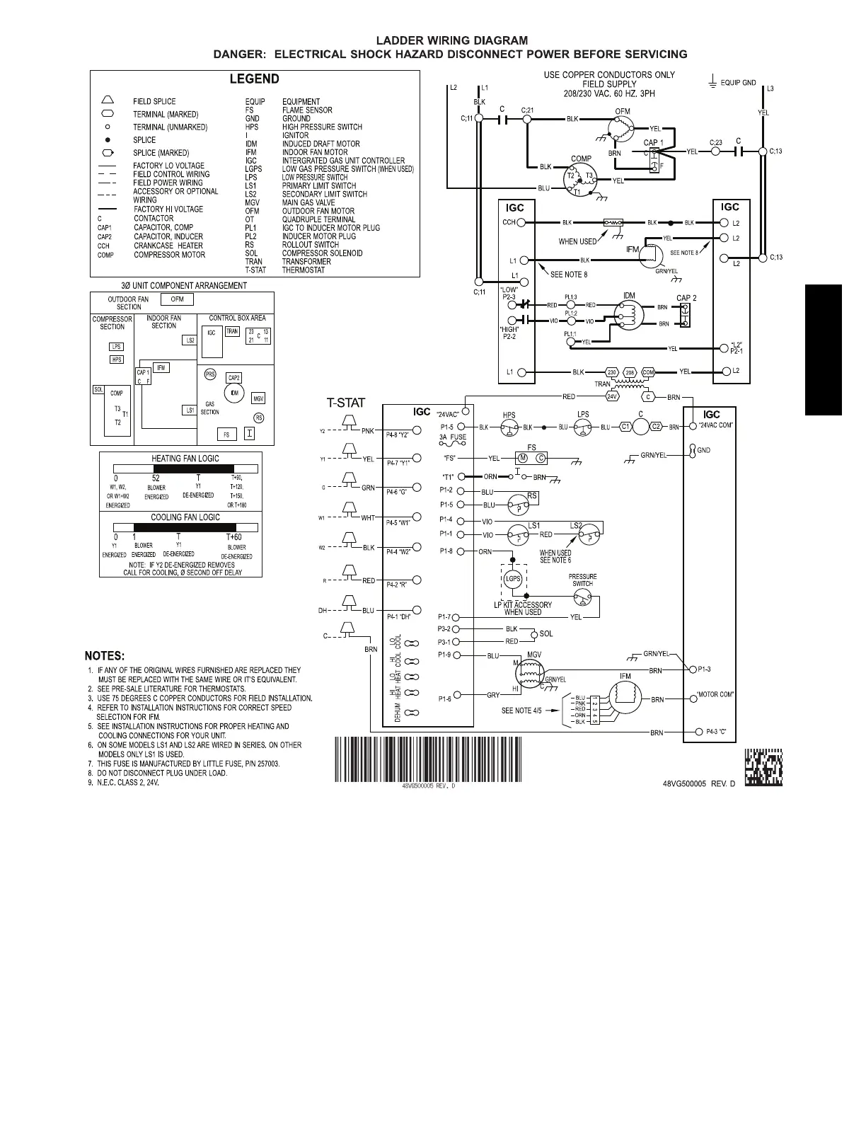 Fig. 18 Cont. -- 208/230--3--60 Ladder Wiring Diagram Gas Inputs 40, 60, 90 KBtu/hr