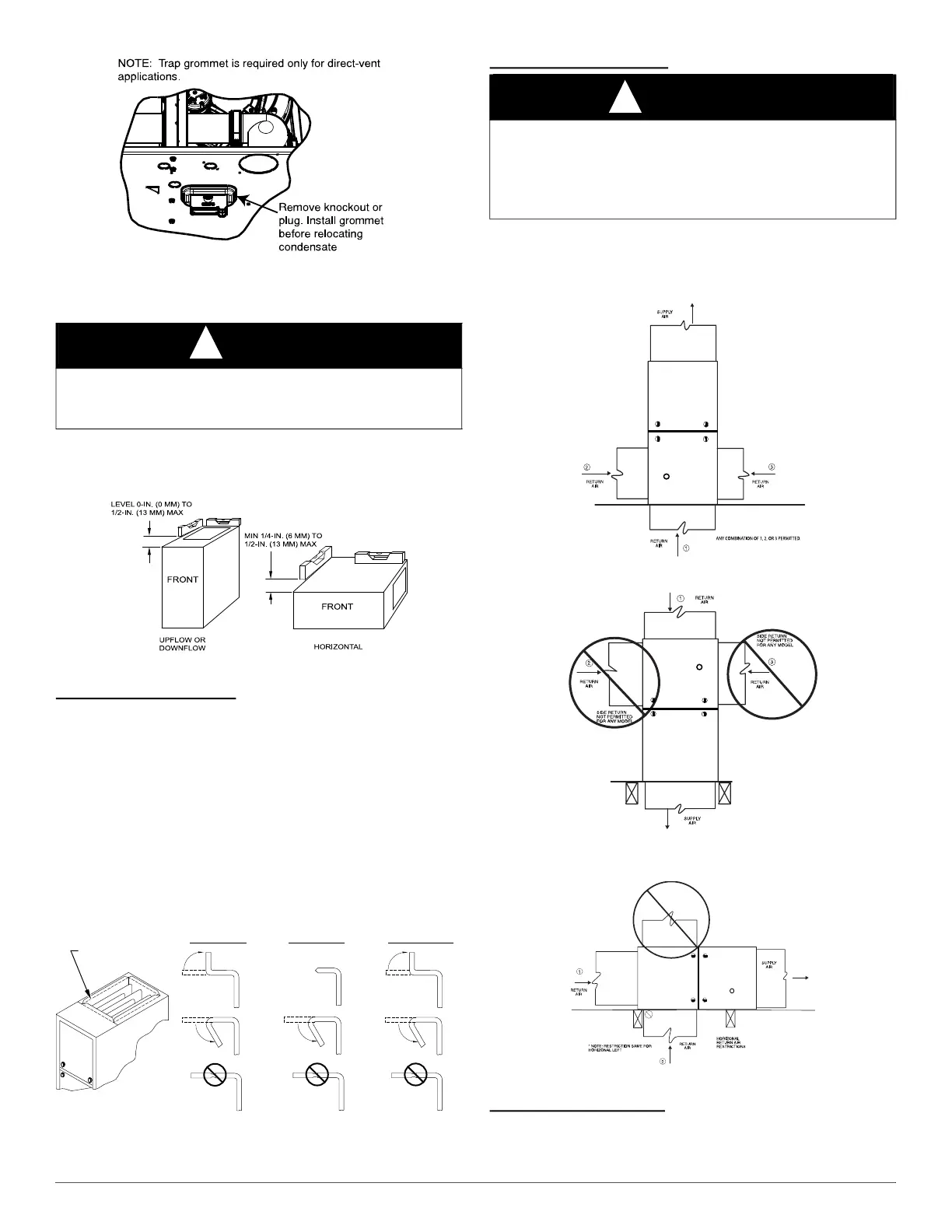 Fig. 21 – Upflow Return Air Configurations and Restrictions