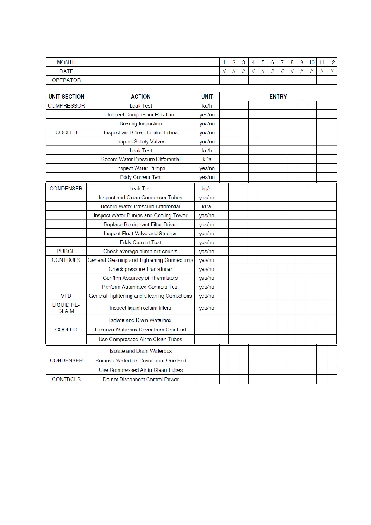 19DV monthly Maintenance Log