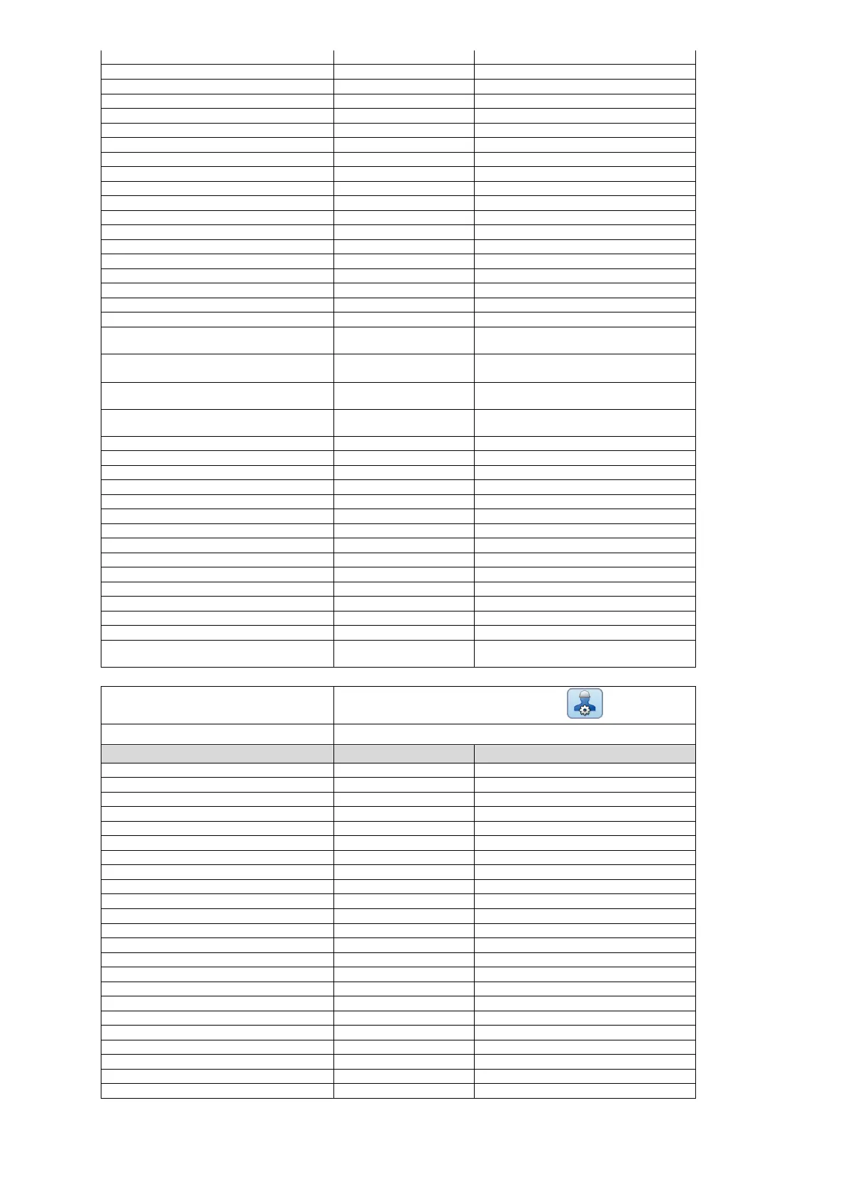 Configuration Menu / Service parameters