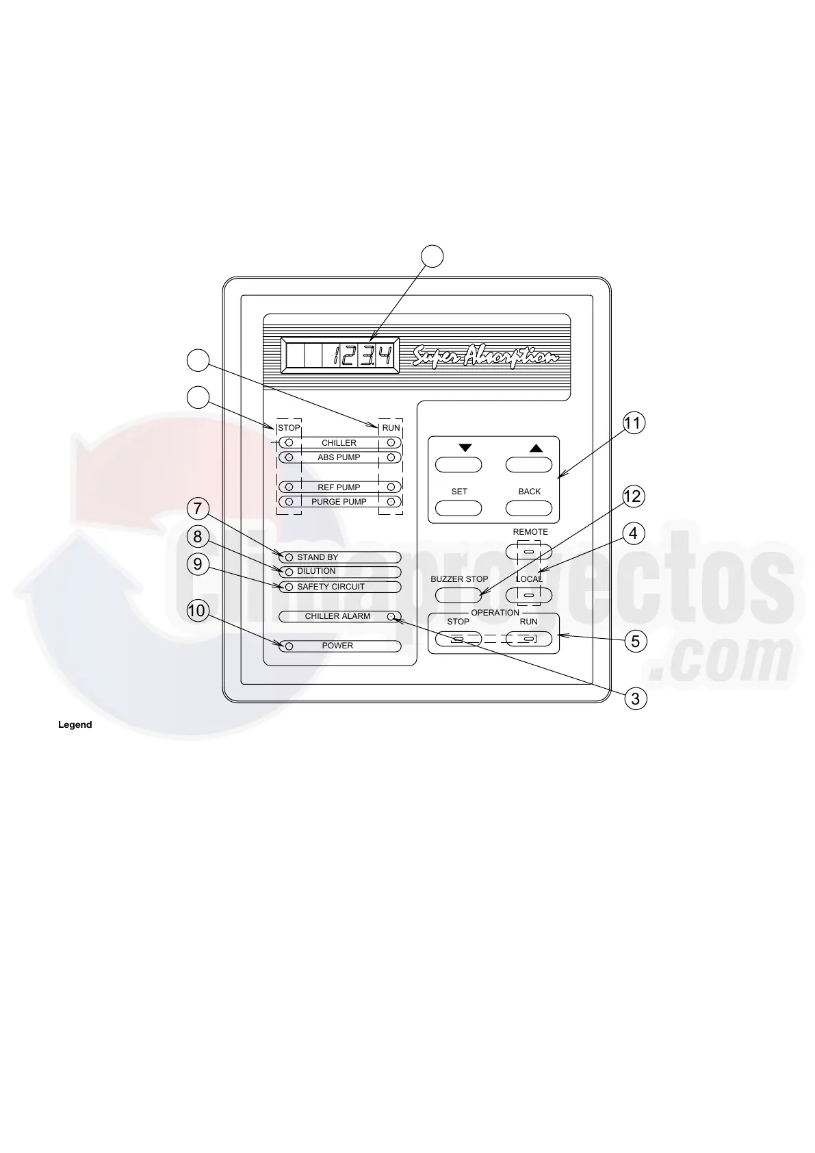 7 Standby indication light: On when the chiller is waiting for the interlock signals form the chilled water and the cooling water pump.