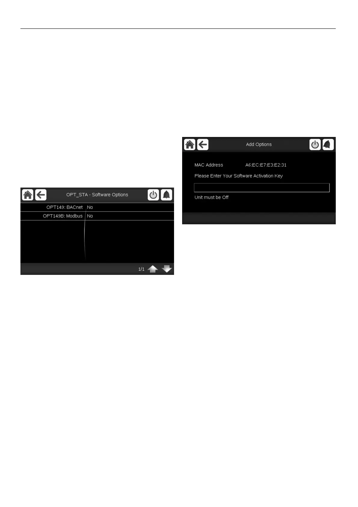 Each option requires an individual software activation key.