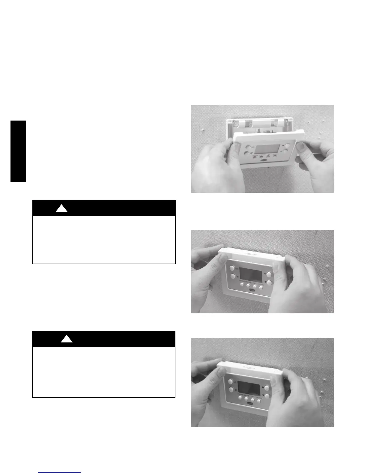 9. Set the thermostat front housing into the (2) latches
