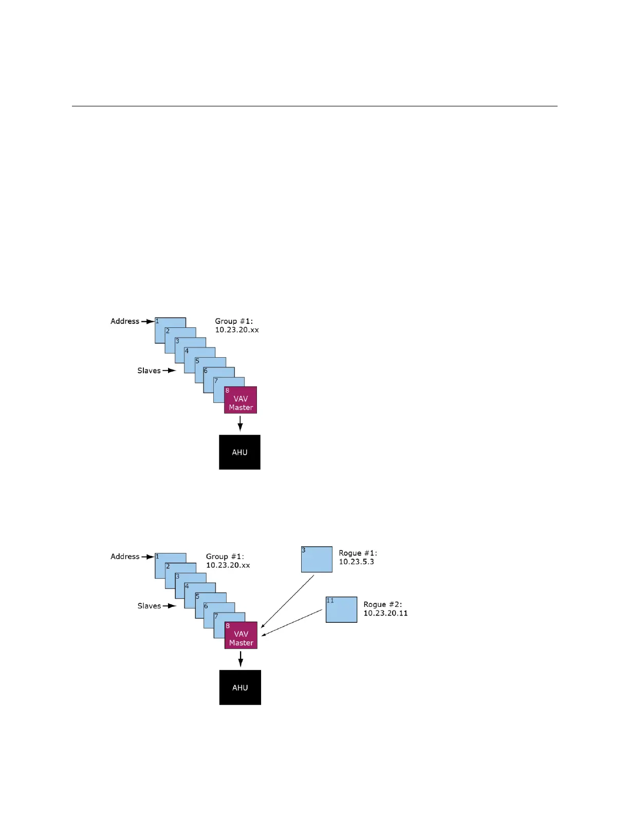 as multiple networks with VAV sub-masters and slaves on other networks. See the following examples.