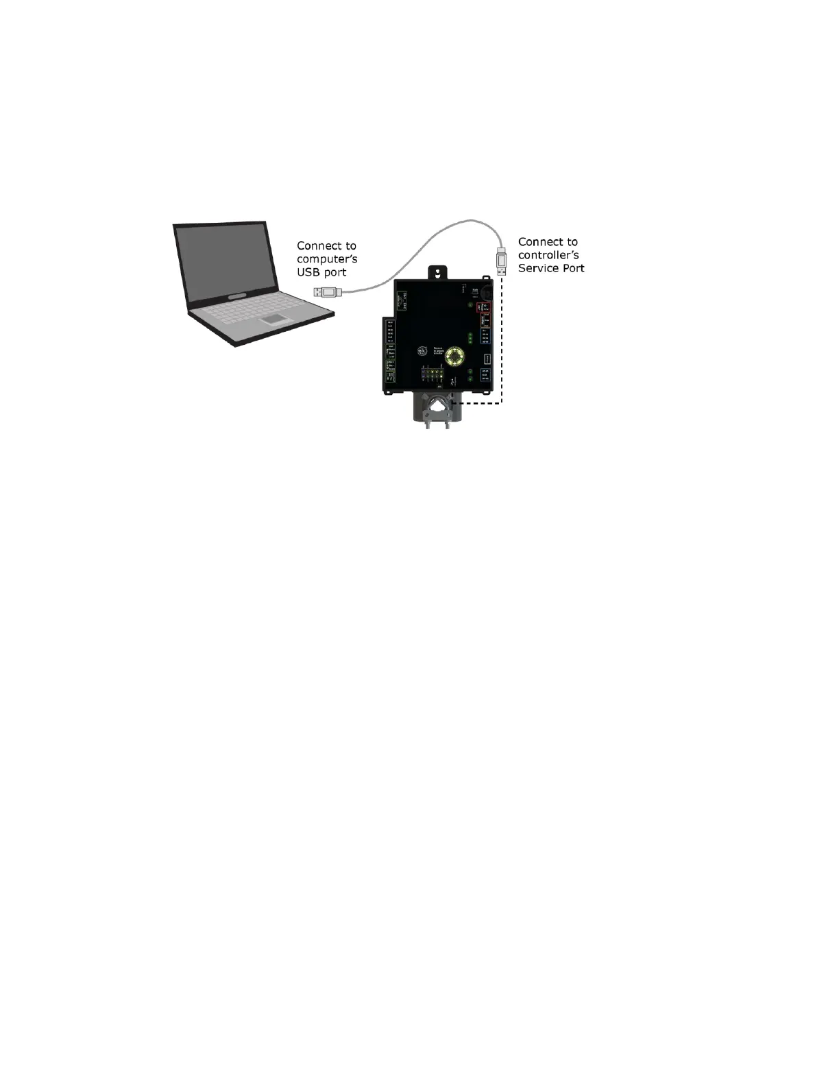 1 Connect a USB Type-A Male to Male USB cable from a computer to either of the controller's Service USB