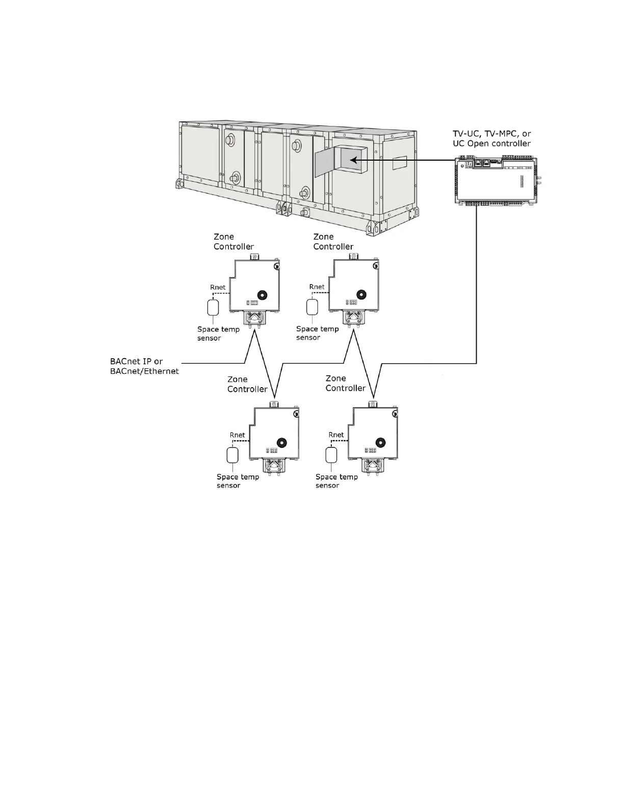 The following illustration shows the TV-VAVB3-E2 in a typical i-Vu® Control System.