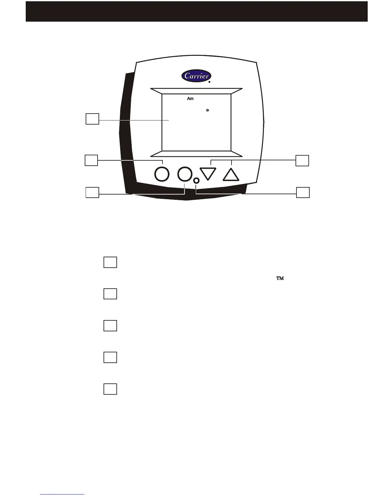 Carrier TSTATCCPB501 - Front Panel Overview; Liquid Crystal Display with Thermoglow; Up;Down Adjustment Buttons; Mode Selection Button