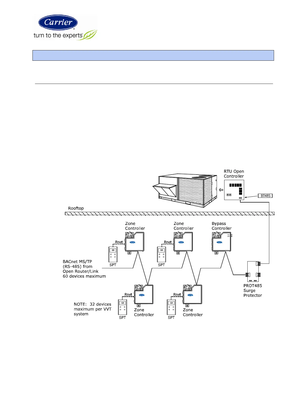 The following illustration shows the VVT Zone Controller in a typical i-Vu Open Control System.