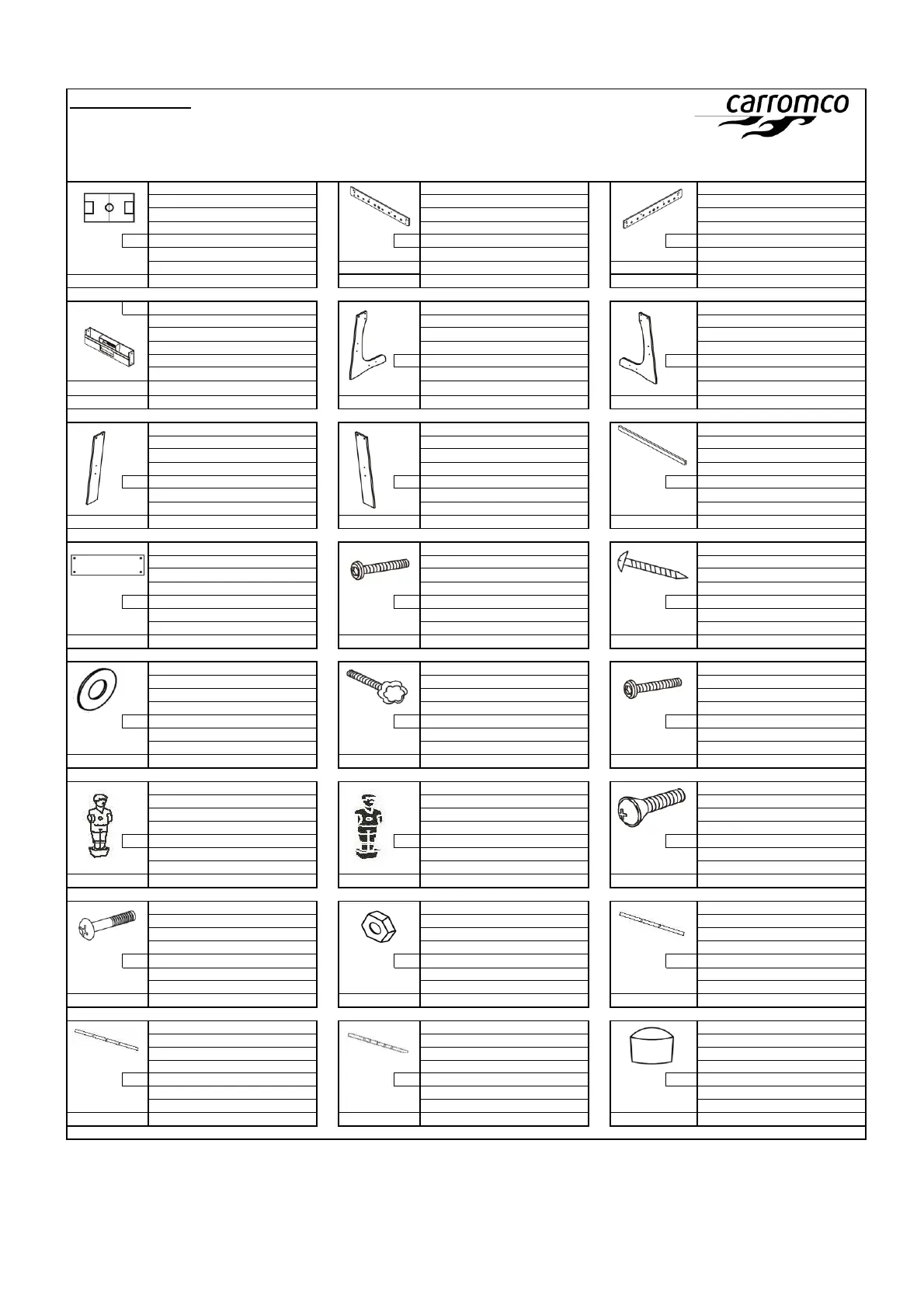 3 x PANEEL VORR POOT 8 x BOUT 16 x SCHROEF