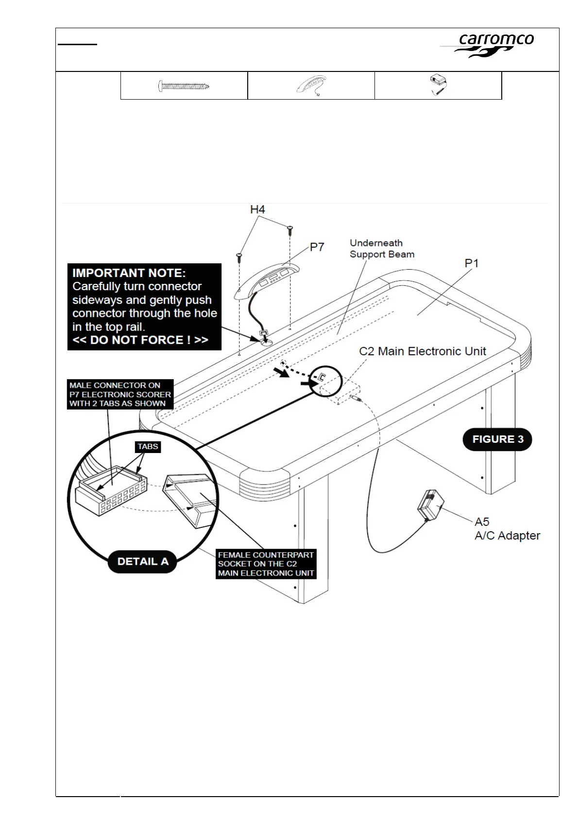 IMPORTANT NOTE: Carefully turn connector sideways and gently push connector through the hole in the top rail. DO NOT FORCE