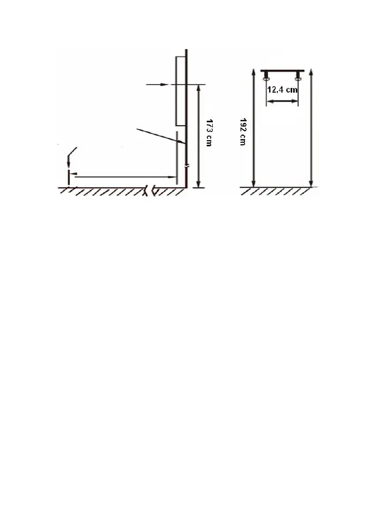 podlahou a ve vzájemné vzdálenosti 12,4 cm (4 7/8"). Zašroubujte dva šrouby do