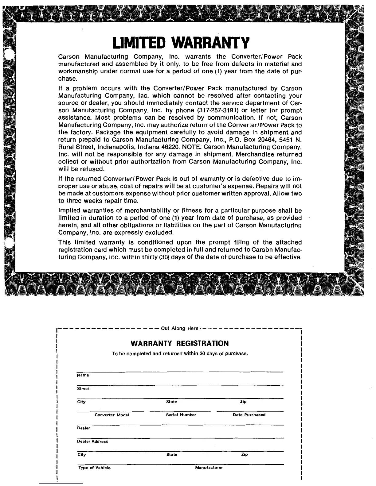 Carson CP-06FK-1 - Limited Warranty Information; Warranty Registration Procedure