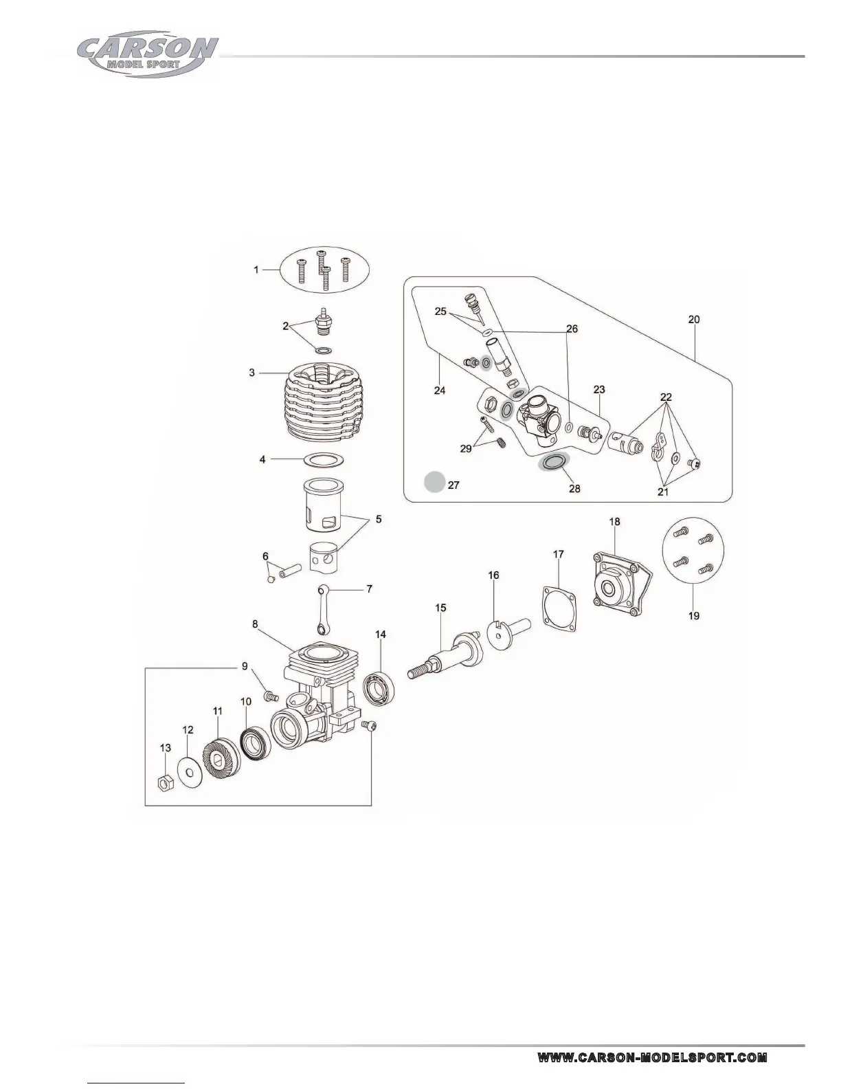 Carson DAZZLER RTR - Exploded View of the Engine; Disegno Esploso Motore
