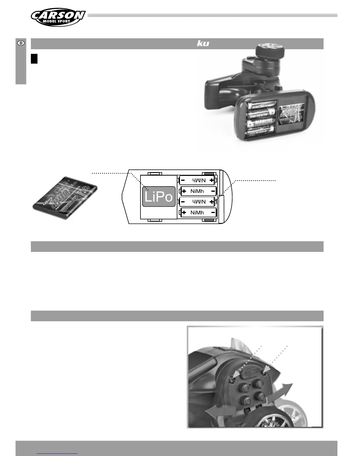 erhältlichen LiPo Akku ein. Achten Sie auf die richtige Polarität.