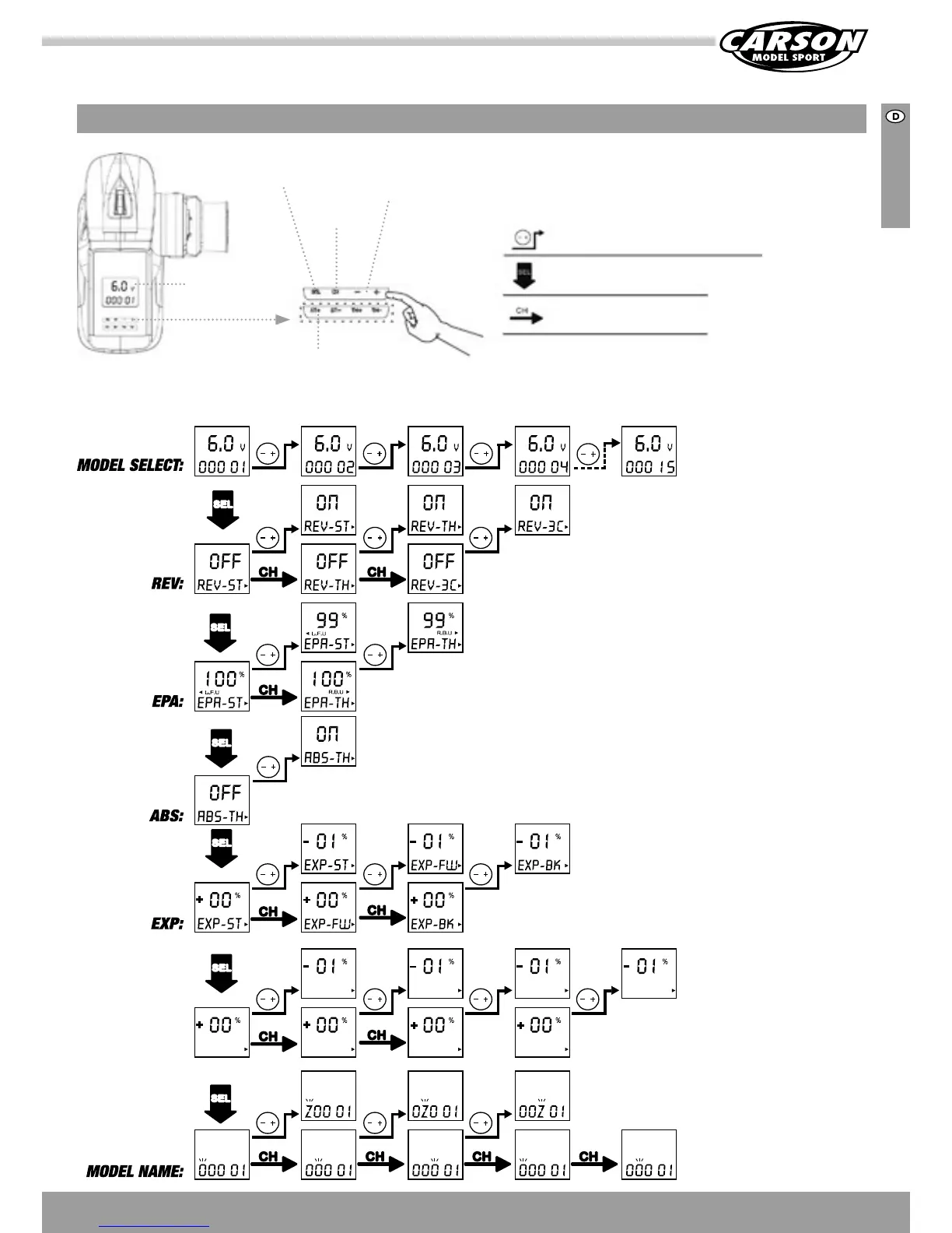 bedeutet „CH“ Knopf drücken