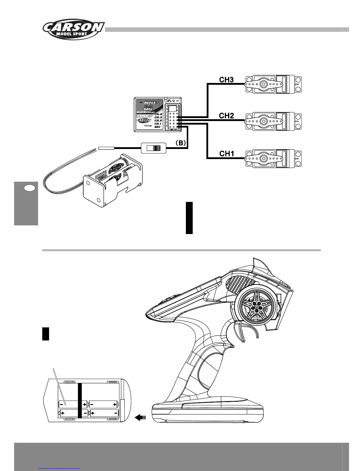 Se requieren pilas/baterías para el receptor, así como dos servos.