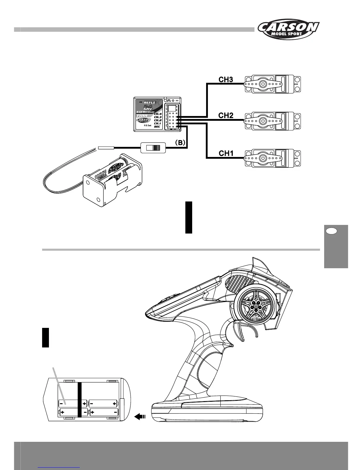 Sono necessari batterie/accumulatore del ricevitore e due servocomandi.