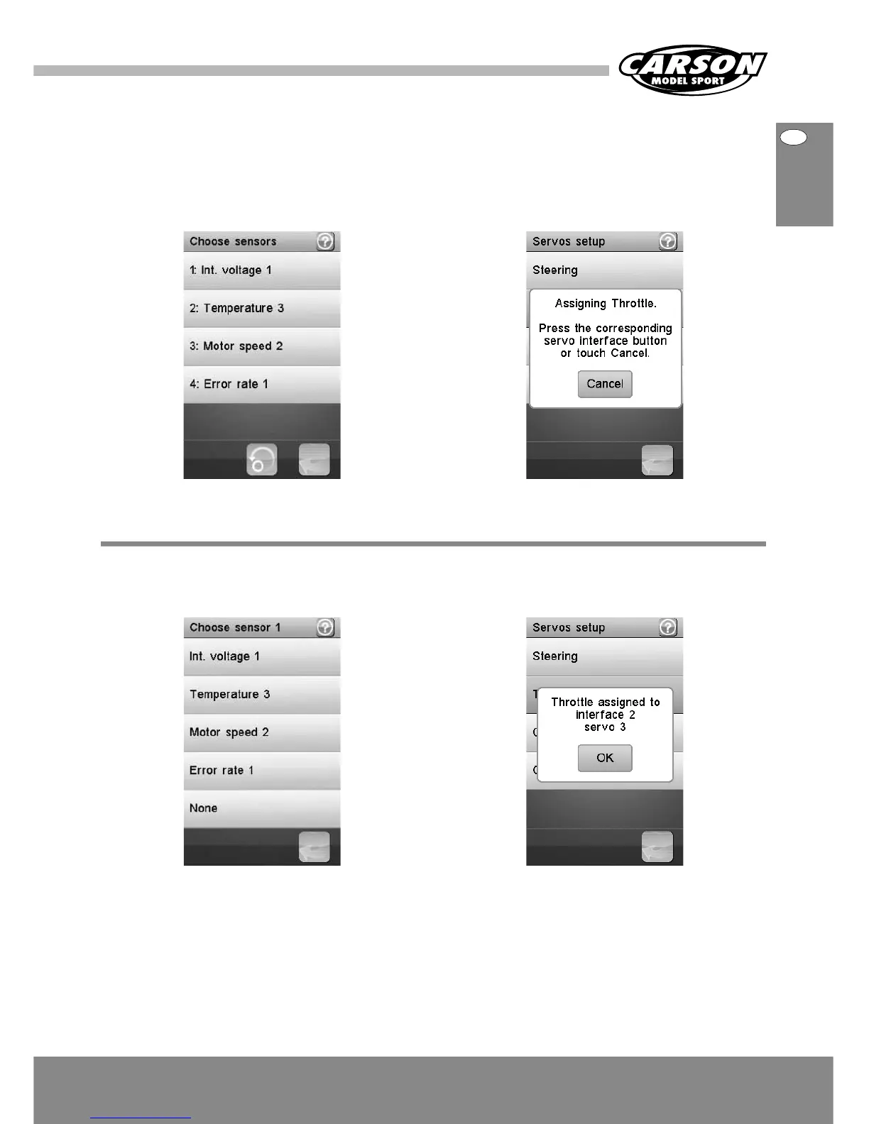 The next menu lists all available sensors. Touch the