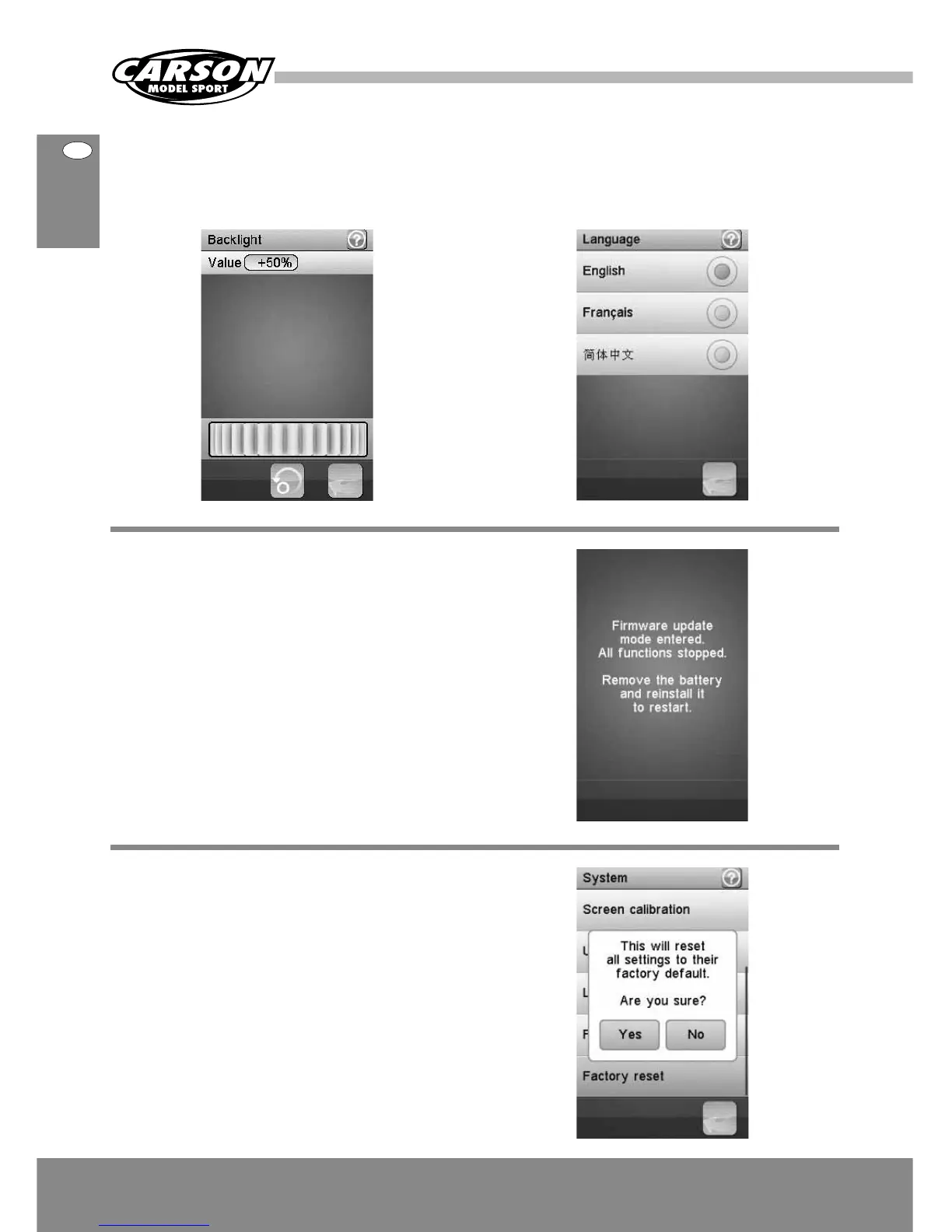 Backlight: adjust the level of the backlight. A high