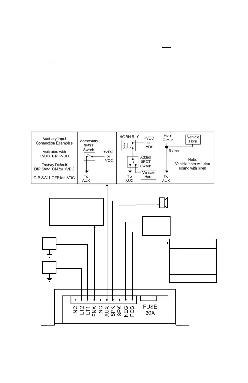 of the vehicle or other switch. See OPERATION section for auxiliary input functions.