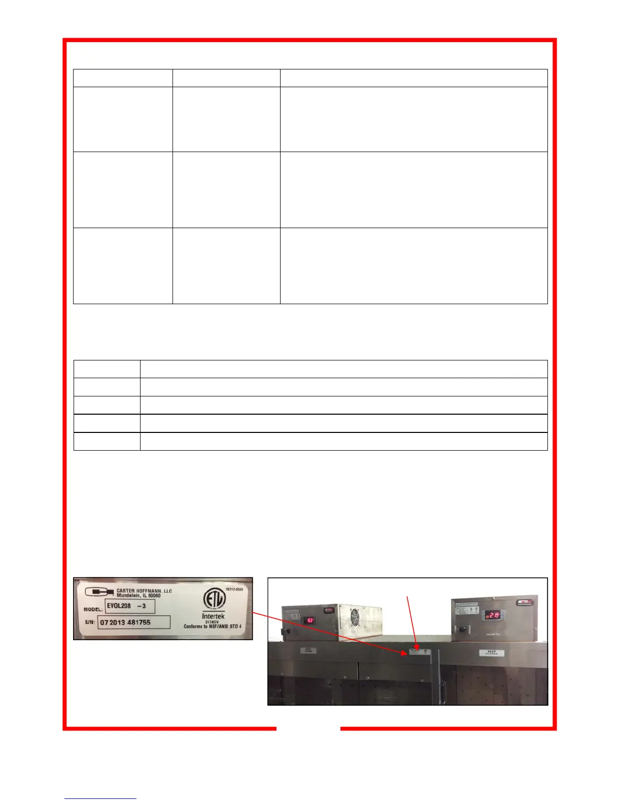 NOTE: Prior to calling for service locate the serial tag on the cabinet. You will need the serial