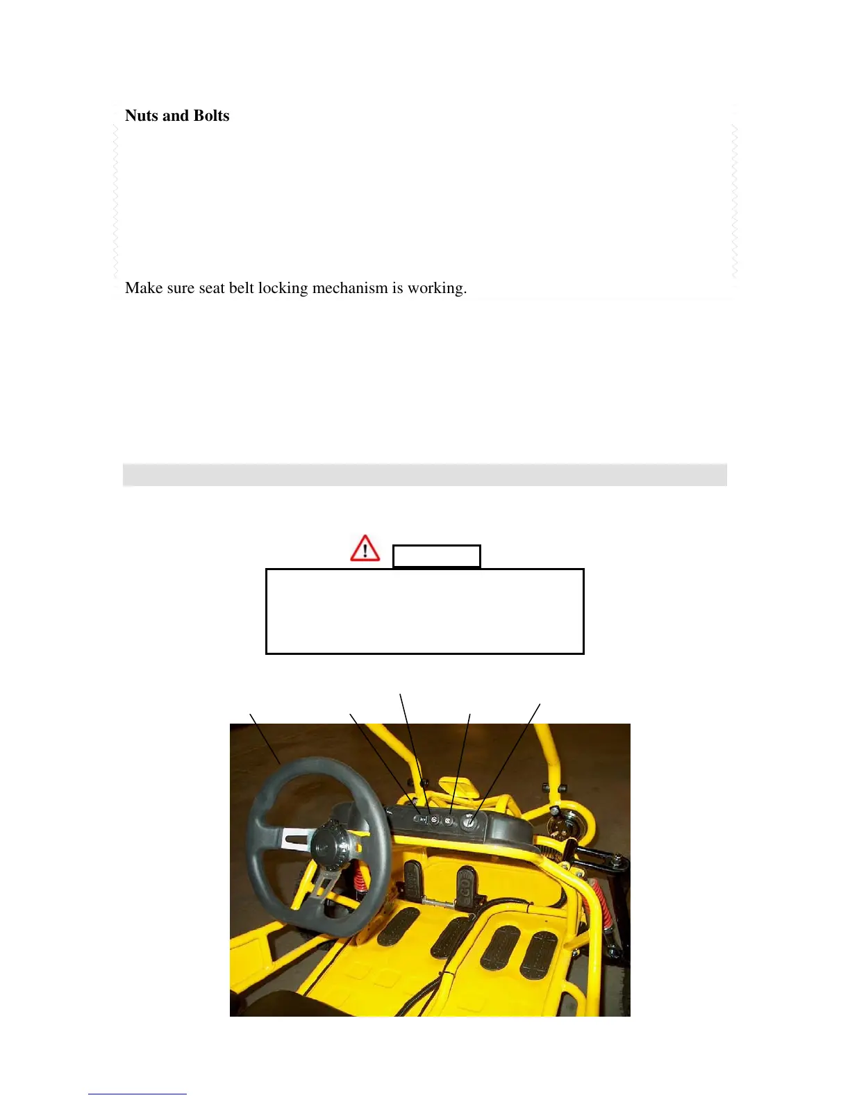Check the wheels to see that the axle nuts are tight. Use a wrench to make sure all