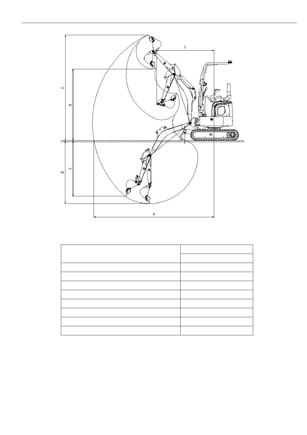 B Max. digging depth 1830