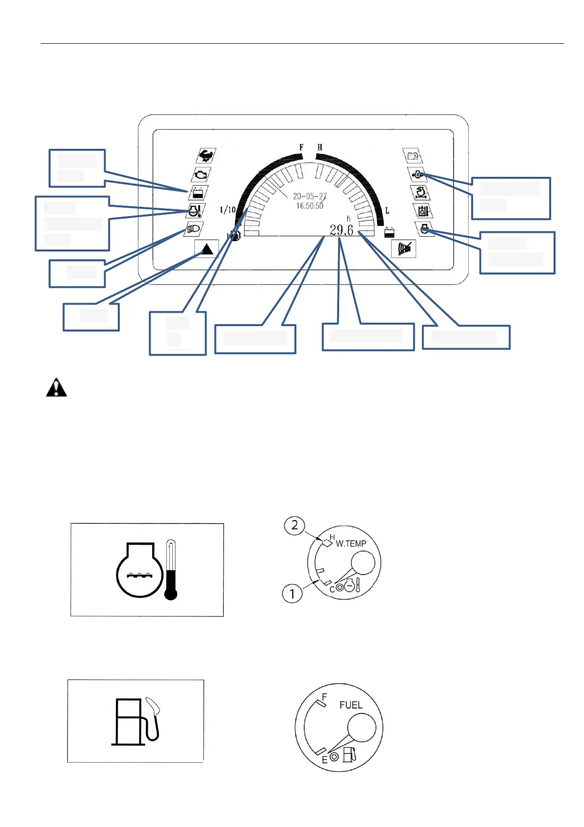 Monitor the engine cooling water temperature, and zone 1 indicates the normal water temperature. When the temperature reaches