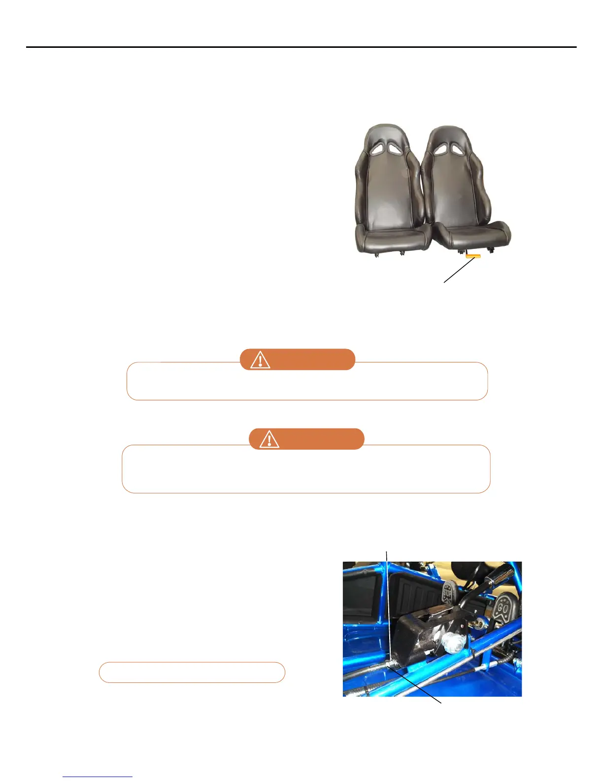 Never operate this buggy when the provided seat is not securely fastened, to