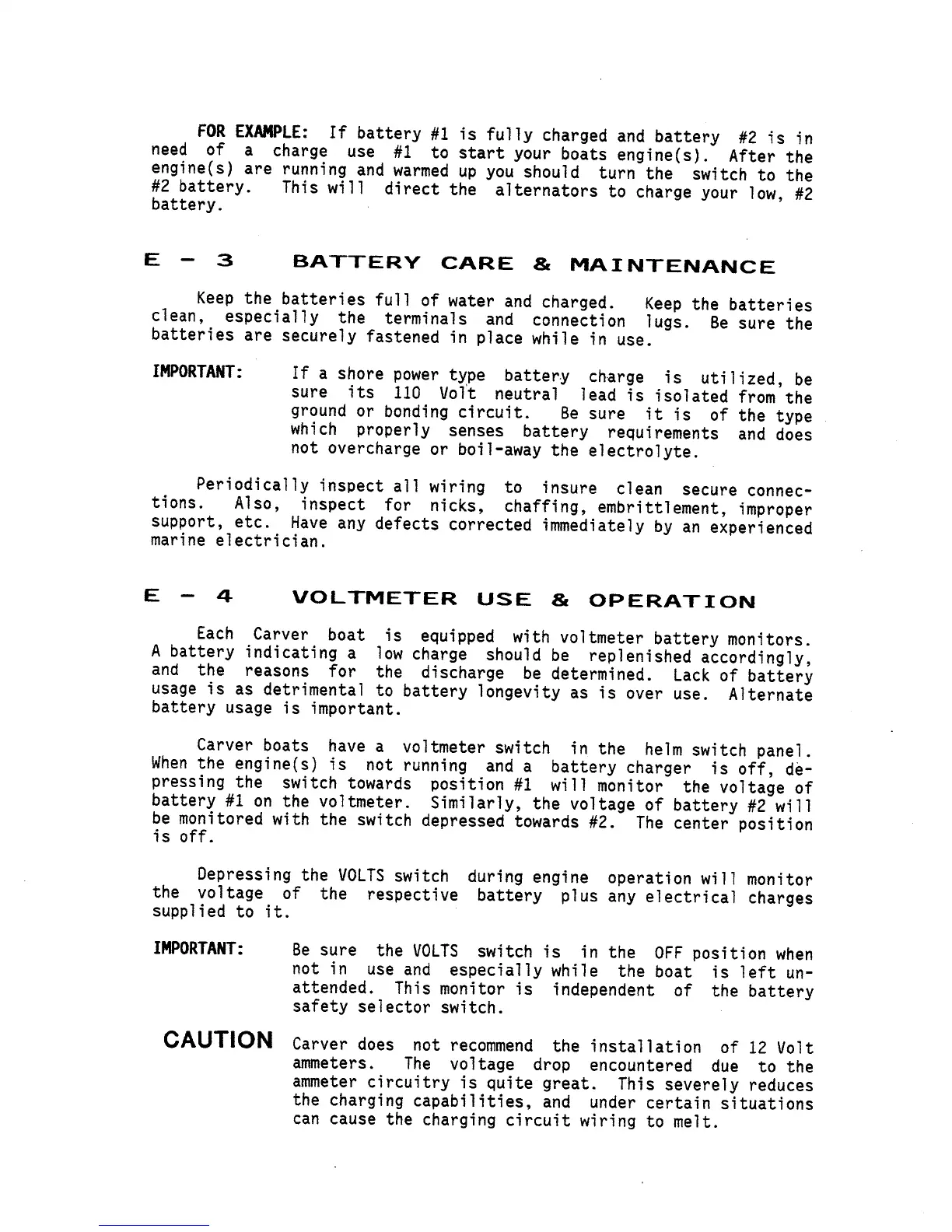 Carver 2767 - Article E-3 Battery System Care & Maintenance; Article E-4 Voltmeter Use & Operation