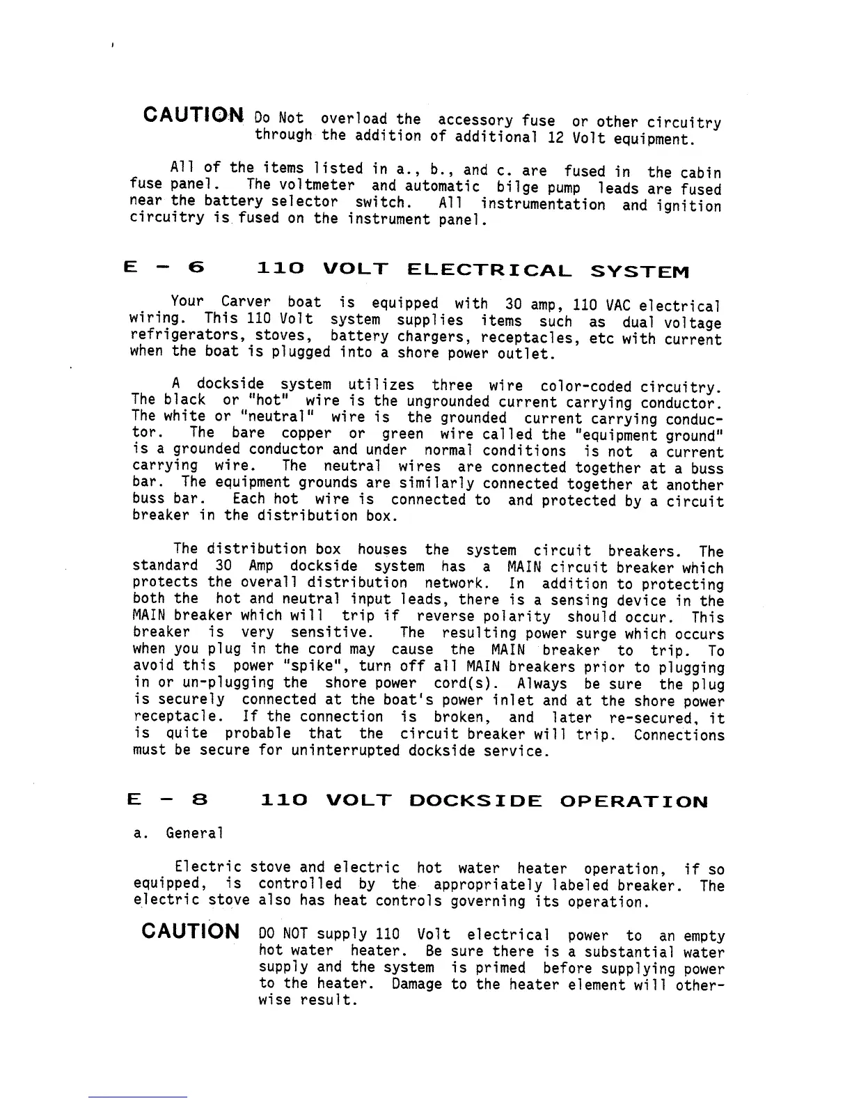Carver 2767 - Article E-6 110 Volt Electrical System; Article E-8 110 Volt Dockside Operation