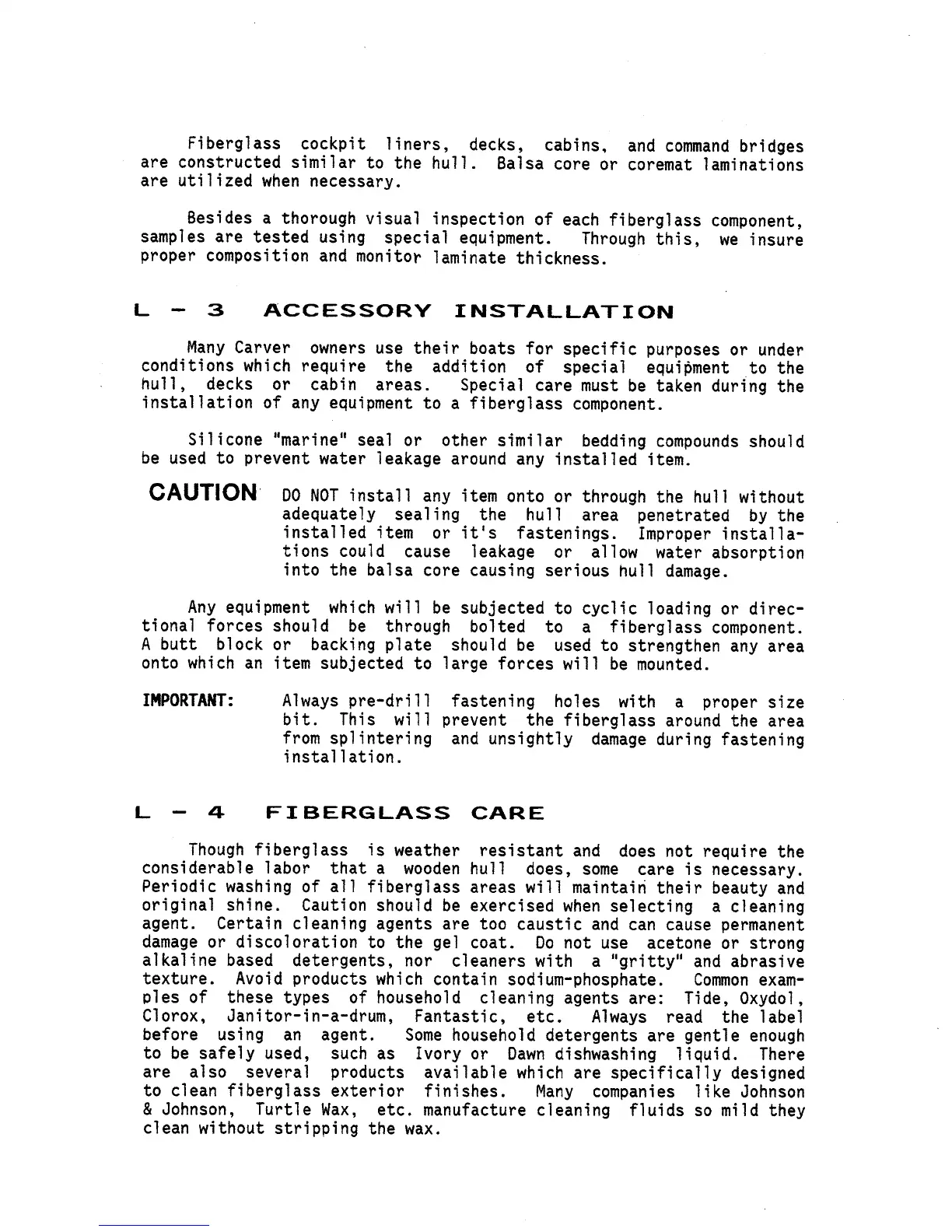 Carver 2767 - Article L-3 Accessory Installation; Article L-4 Fiberglass Care