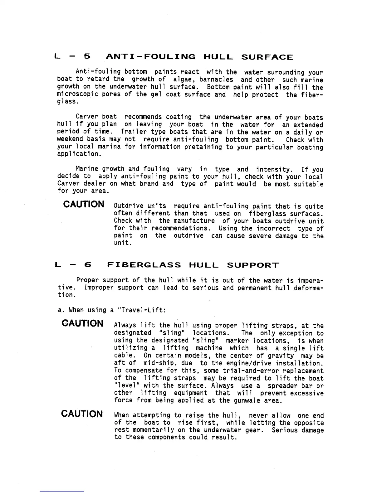 Carver 2767 - Article L-5 Anti-fouling Hull Surface; Article L-6 Fiberglass Hull Support