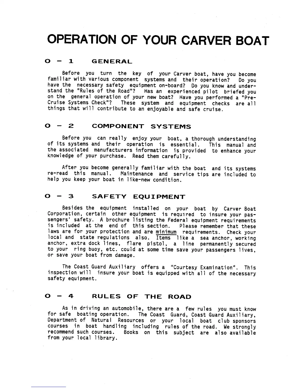 Carver 2767 - Article O-1 General; Article O-2 Component Systems; Article O-3 Safety Equipment; Article O-4 Rules of the Road
