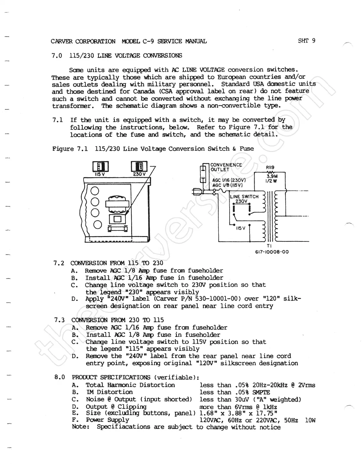 CARVER cORpoRRTlcIN Moral c-9 SERVICE MANUEL