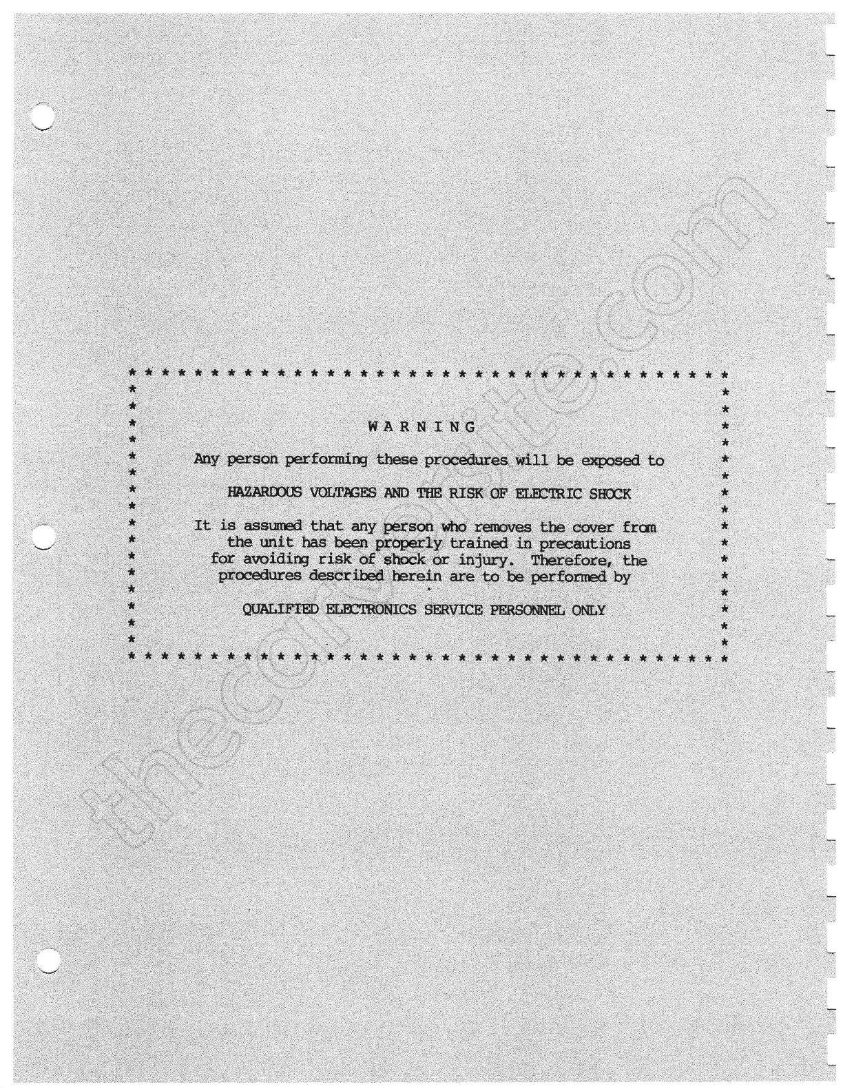 Carver C-9 - General Safety Warning; Hazardous Voltages and Electric Shock Risk
